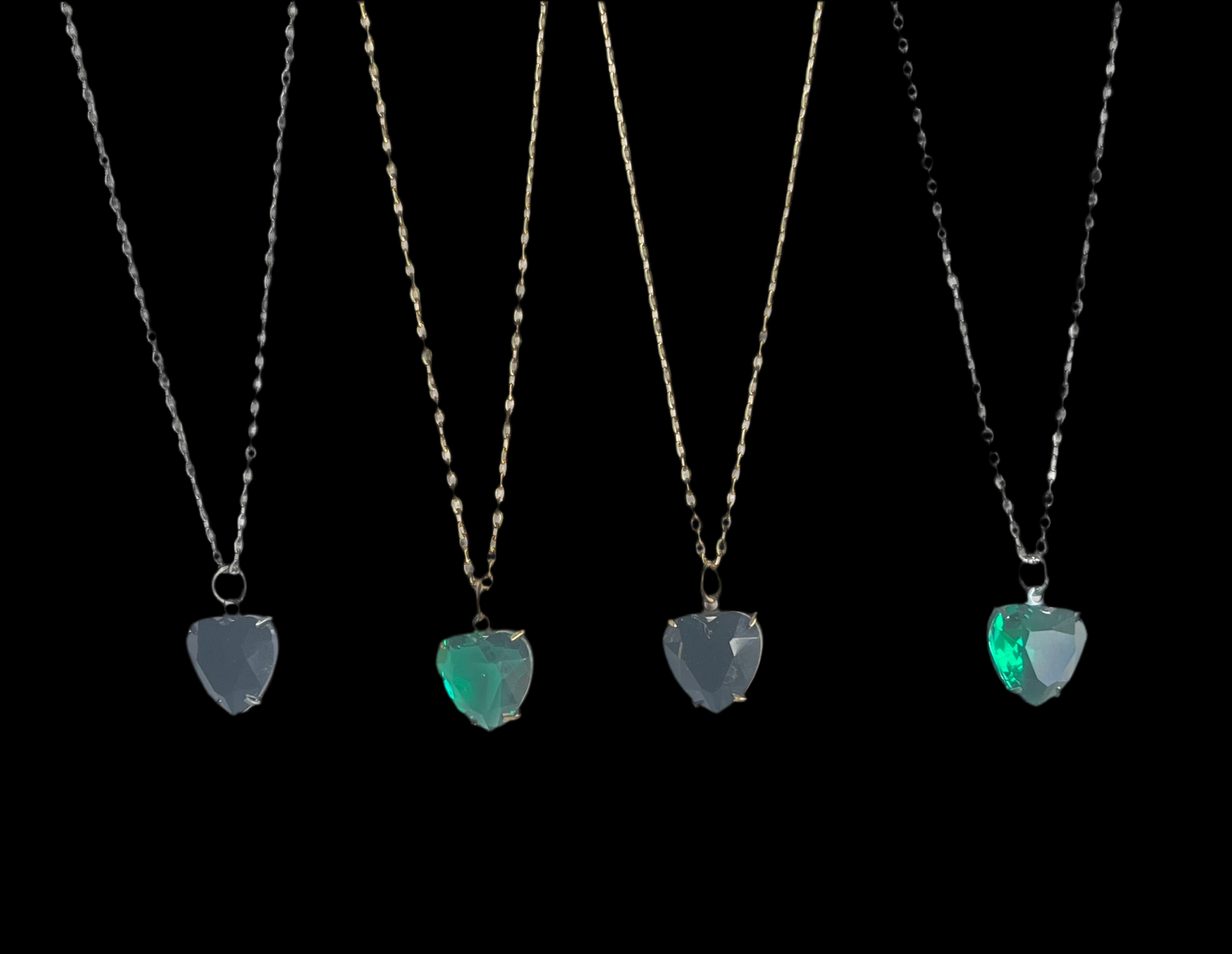 stainless steel necklace on an 18 inch chain, pendant is made from glass