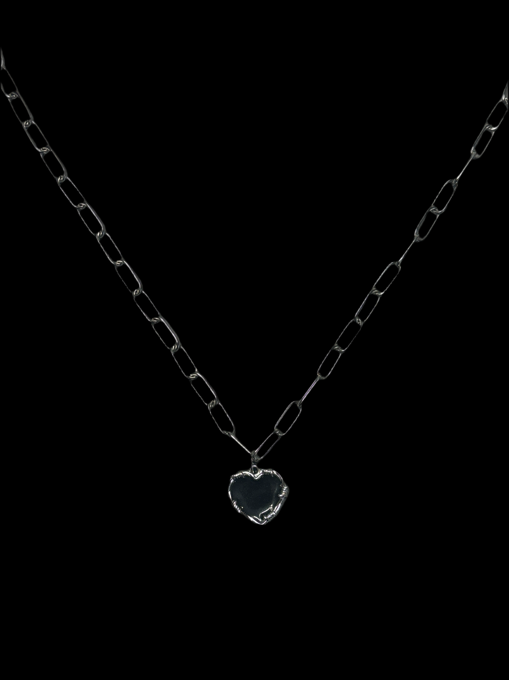 Necklace is a paperclip style, stainless steel. 18” handmade chain with a 2 inch extender.