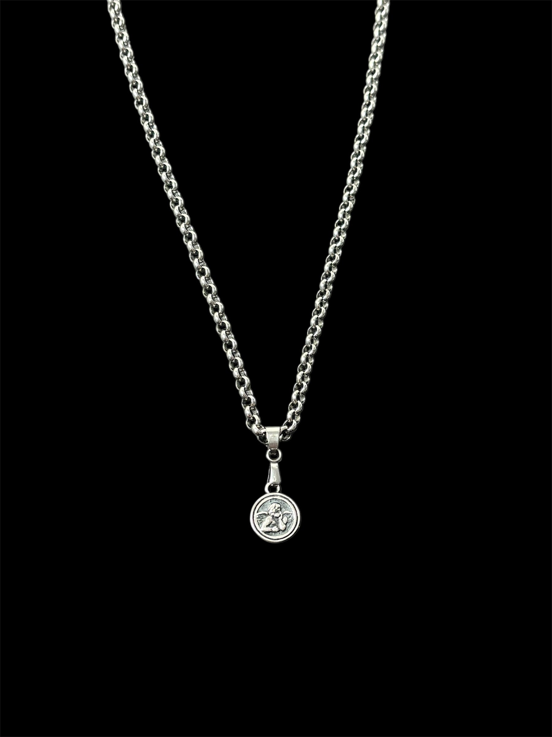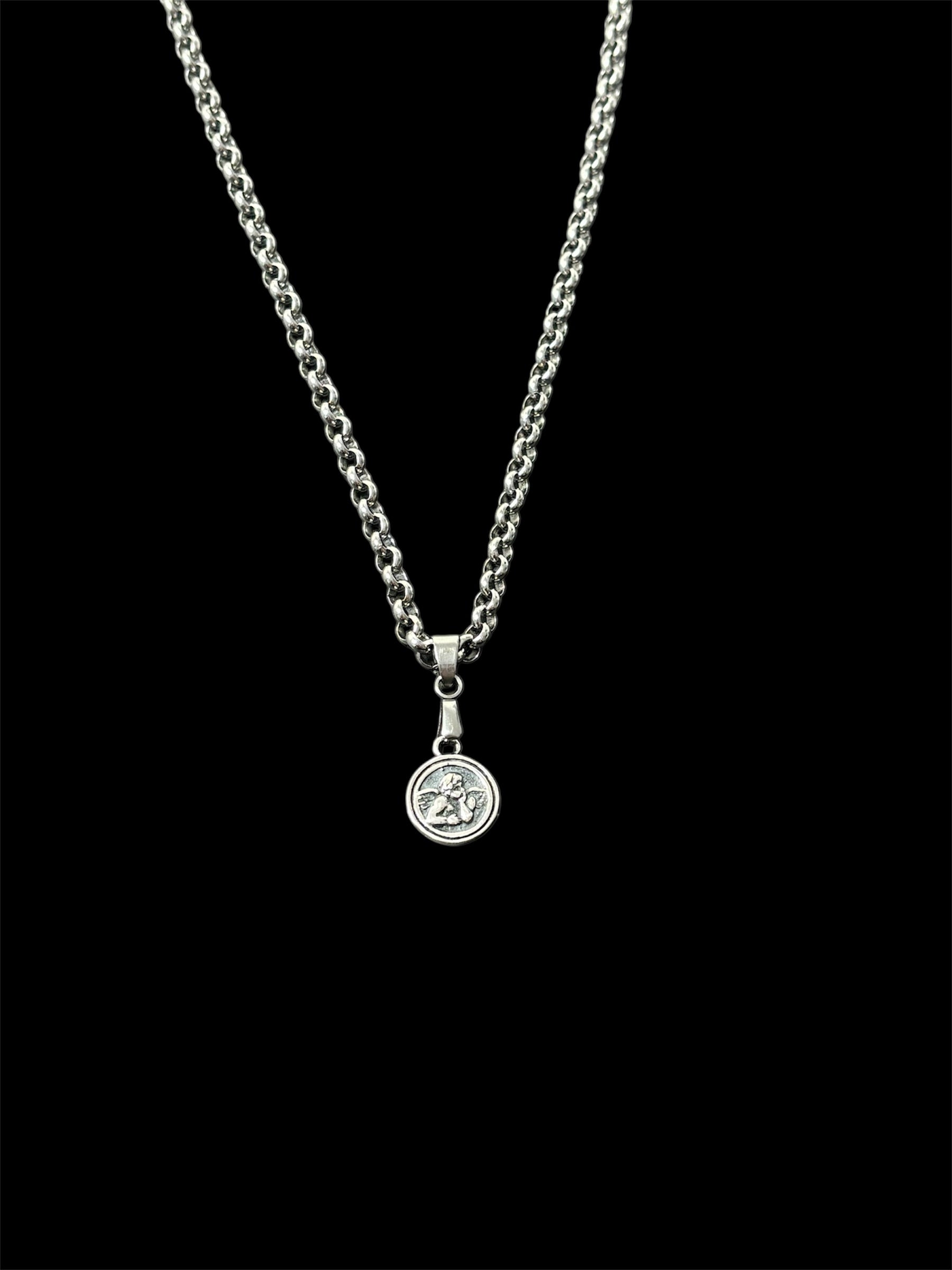 Stainless Steel Necklace with a sterling silver charm